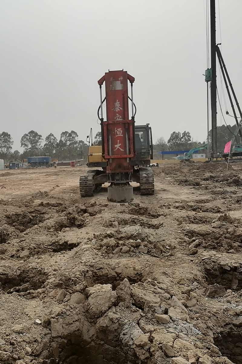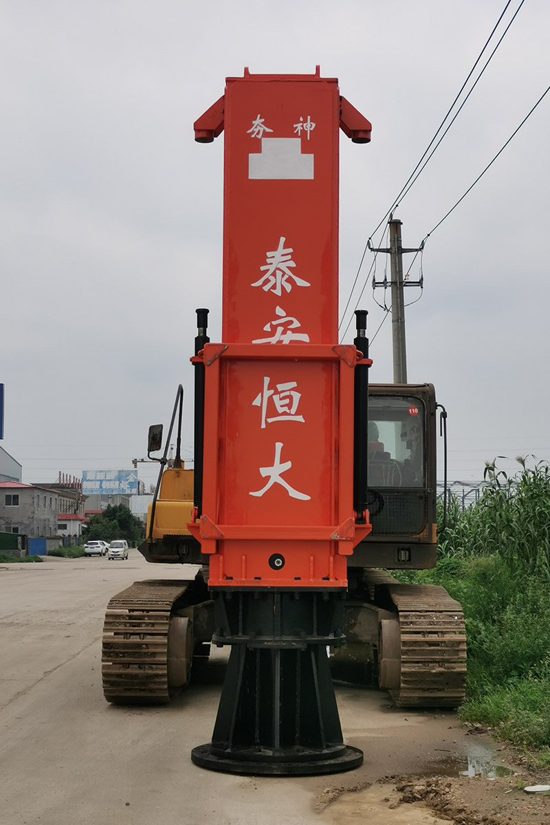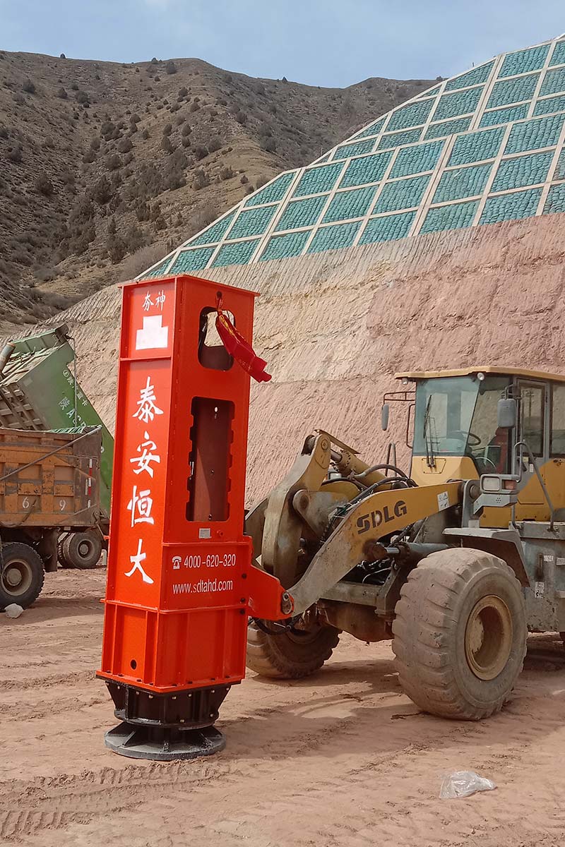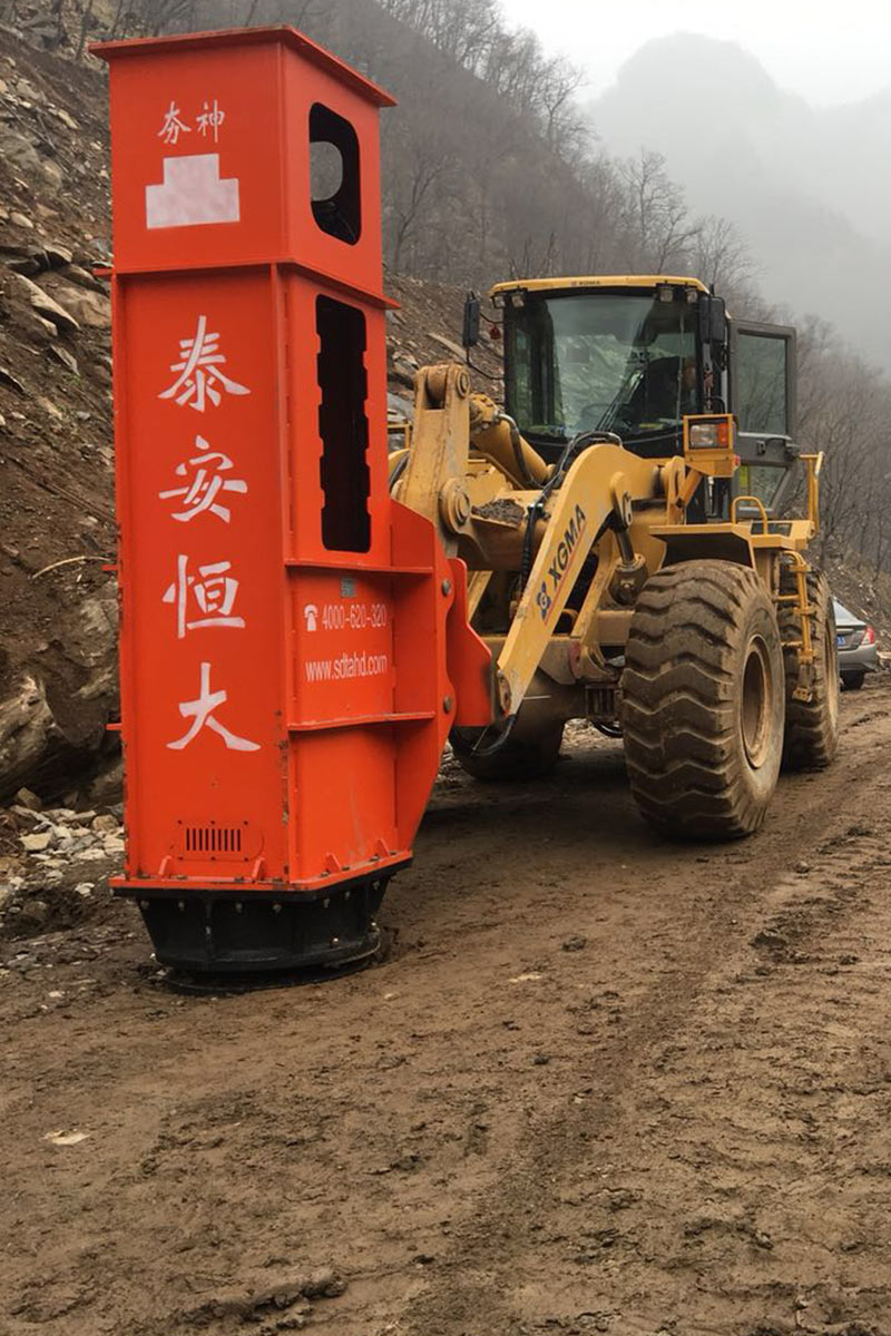 多功能液壓振動夯,又稱振動錘、挖掘機打樁機、挖掘機改裝打樁機等。挖掘機改裝多功能液壓振動夯可打6米、9米、12米、15米、18米長的鋼板樁,以及10米以內的水泥預制樁。多功能液壓振動夯主要由輔助臂、旋轉連接支架、主機箱、夾具、管道五部分組成。挖掘機多功能液壓振動夯源于挖掘機液壓系統液壓,通過專利技術安裝變頻液壓管道。它可以導出主動力,加速流量。